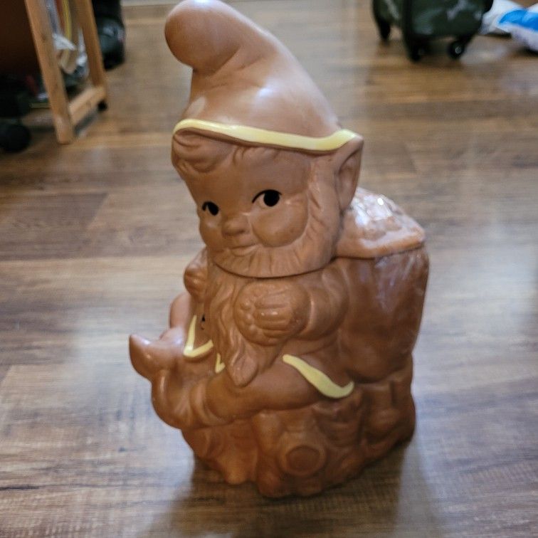 Vintage Winton Collectible Gnome Cookie Jar Fairy Christmas