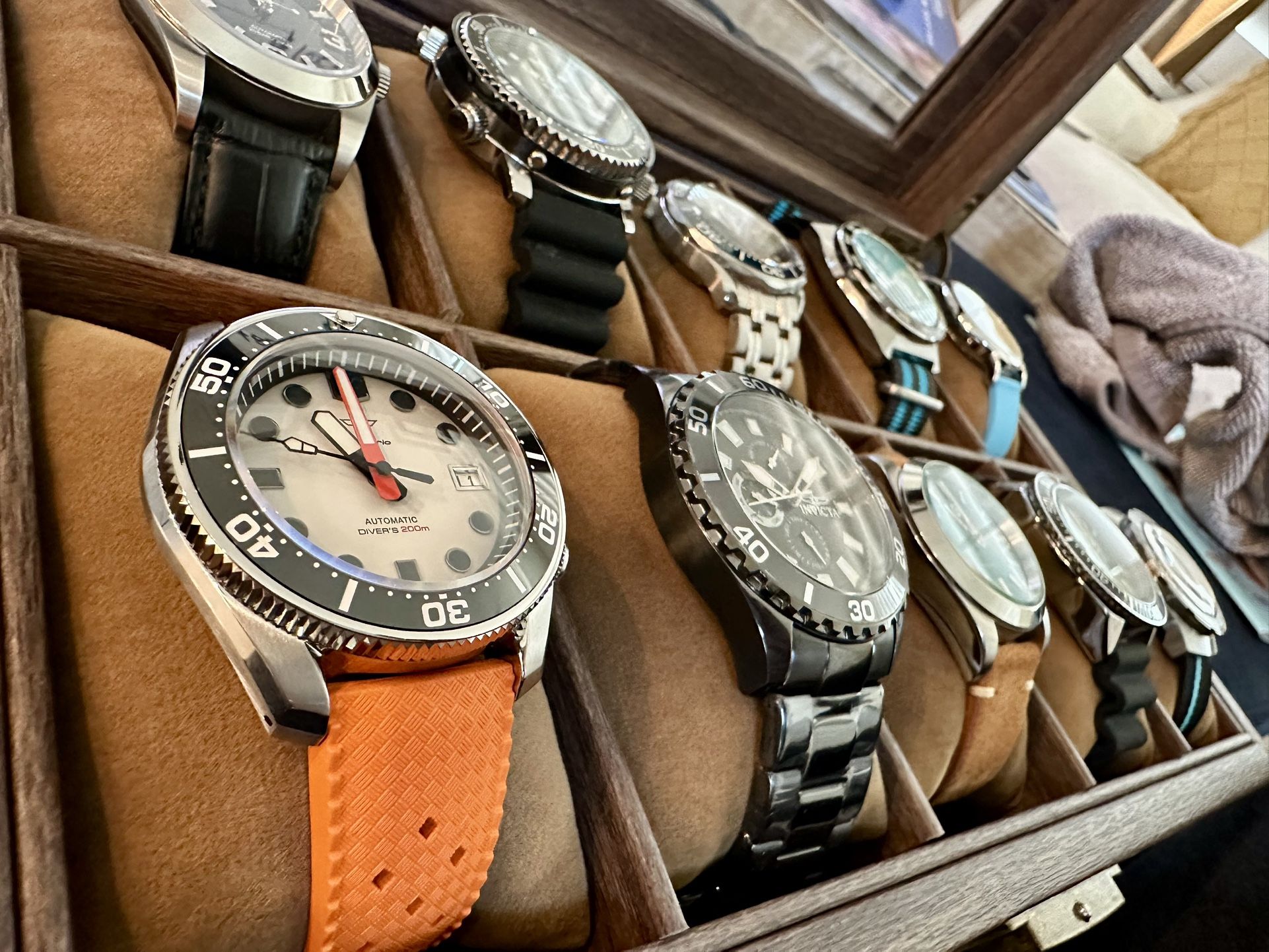 WILLING TO TRADE, LETS DISCUSS All watches are working and in NR-MNT condition. NO TARIFFS, TAXES OR IMPORT FEES! Please review photos and ask questions. Discount for 2 or more purchases. Starting Top Row left-right: PAGANI EXPLORER - Automatic Leather strap $110 INVICTA “Arnie” - Ana-Digi on rubber. $95 TANDORIO “Seamaster” - Automatic SS bracelet $105 HEIMDALLR “Sharky” Diver - Automatic Blue Shark NATO + Leather strap $105 TIMEX “The Gangs All Here” - Quartz $60 (SOLD) Bottom Row left-right: TANDORIO Diver - Automatic on Orange or Black rubber tropical strap $85 INVICTA PRO DIVER - Brand New Quartz with Box and Tags $85 PAGANI “Milguass” Automatic with suede leather strap $90 (SOLD) ADCASDIY Vintage Diver - Quartz on rubber $45 VOSTOK Diver - Fully Lumed dial on NATO (SOLD) ALL OFFERS WILL BE CONSIDERED.
