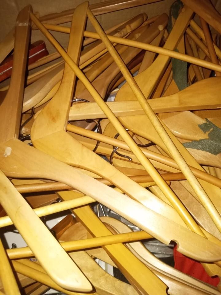 Box Of Wooden Clothing Hangers