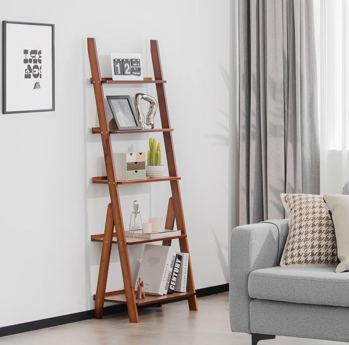 5-Tier Ladder Shelf, Multipurpose Freestanding Display Leaning Storage Shelves, 100% Bamboo Ladder Bookshelf Organizer for Living Room, Bathroom, Kitchens Welcome to visit our store at Santa Fe Springs, CA