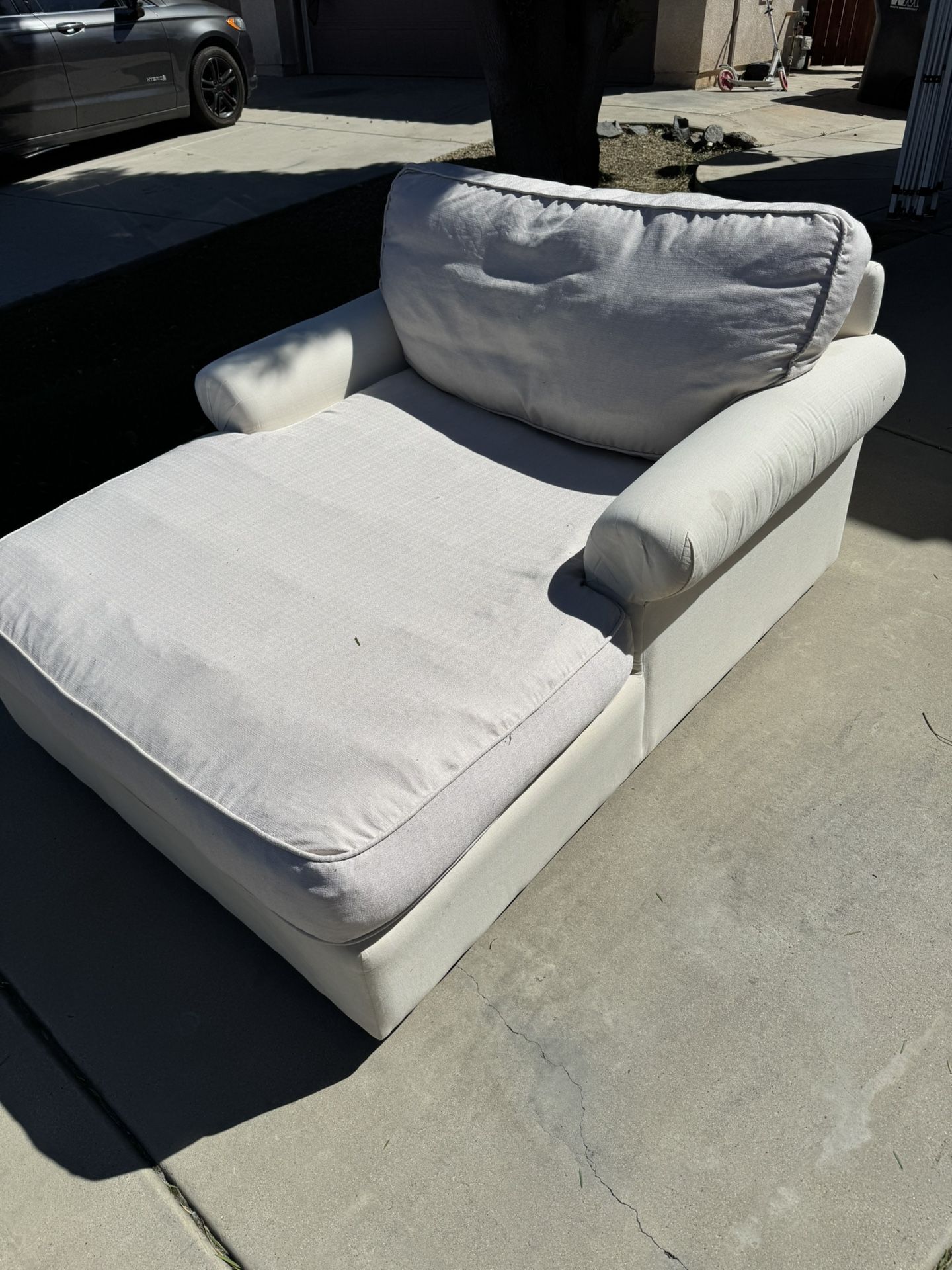 Sofa u luv. Trying to get stuff out of garage now. $75 OBO Just fyi. The pillows are new and the cover is washable