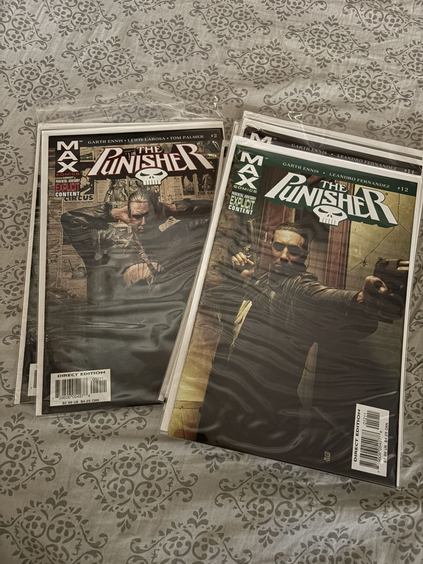 Punisher MAX lot series By garth ennis. Very good condition for all of them. Selling the whole lot for a good price. Not heavy into reading comics anymore and could use the money for other things instead. 10/10 series though thats for sure 🤙