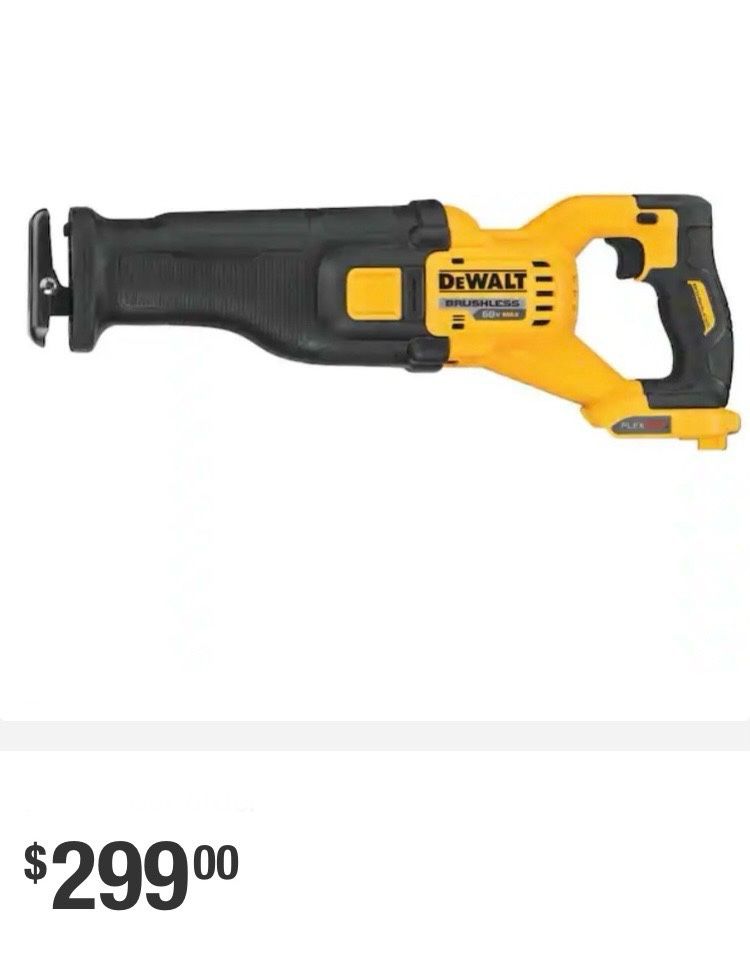 $130 Brand New Dewalt Flex Volt Sawzall 60v Brushless (without battery) $300 (with battery) #save $ ORIGINAL PRICE $299 + tax ORIGINAL PRICE WITH BATTERY $508 + tax