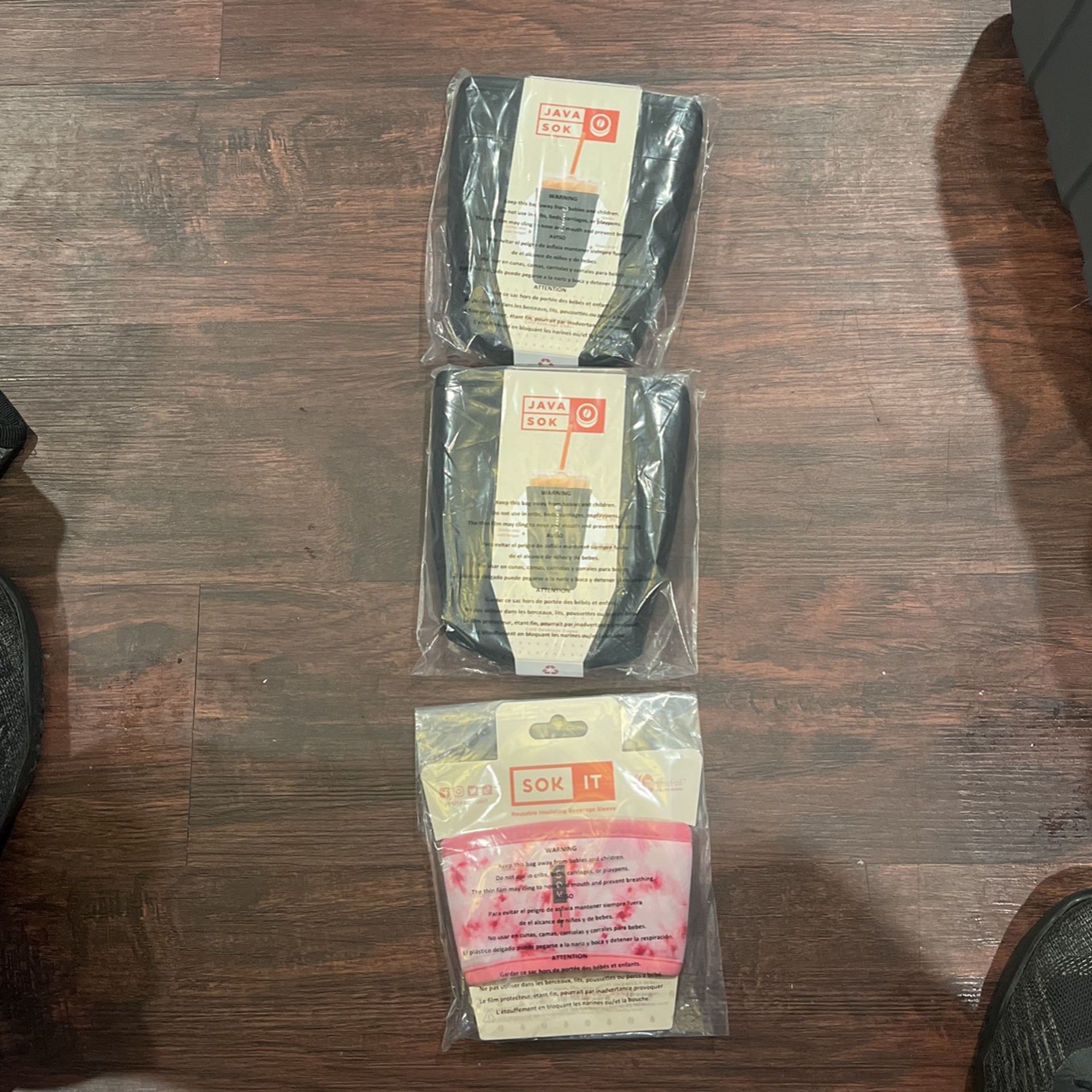 2 large for drinks like Starbucks trenta size 1 pink for smaller drinks