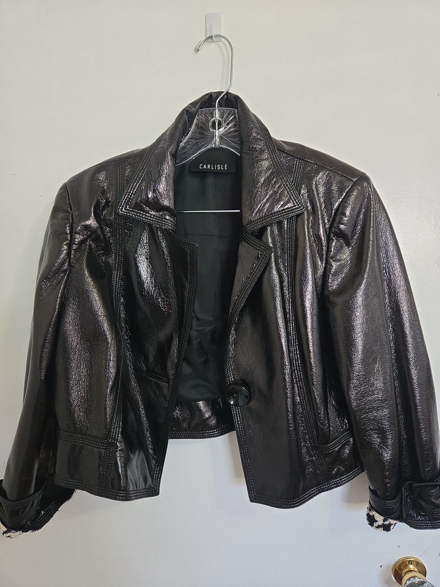 Jazzy black with inside plaid accent short jacket. Sz medium