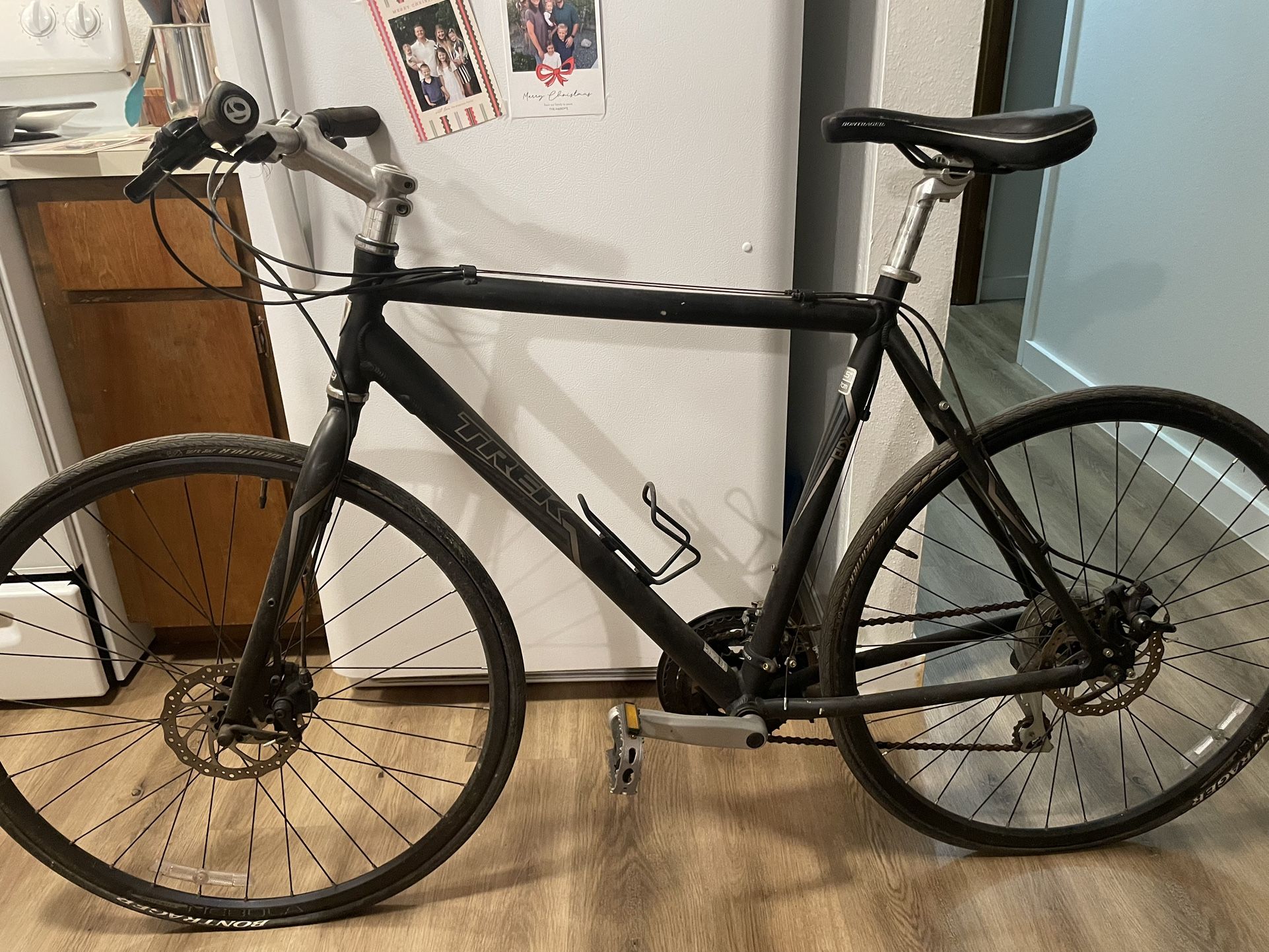 Trek PDX EN14764 ASTM F2043-6 22.5” Frame Disc Brakes 8 Speed Bontrager Tires Shimano Brakes Just so you know the tires are flat(I’ll check to see if I can pump them up, but the tread is still in good condition I would assume it needs a good tune up but the bike wasn’t used a lot. Just stored it mostly. Need to get rid of it. Let me know if you need more details. I’ll clean it before selling