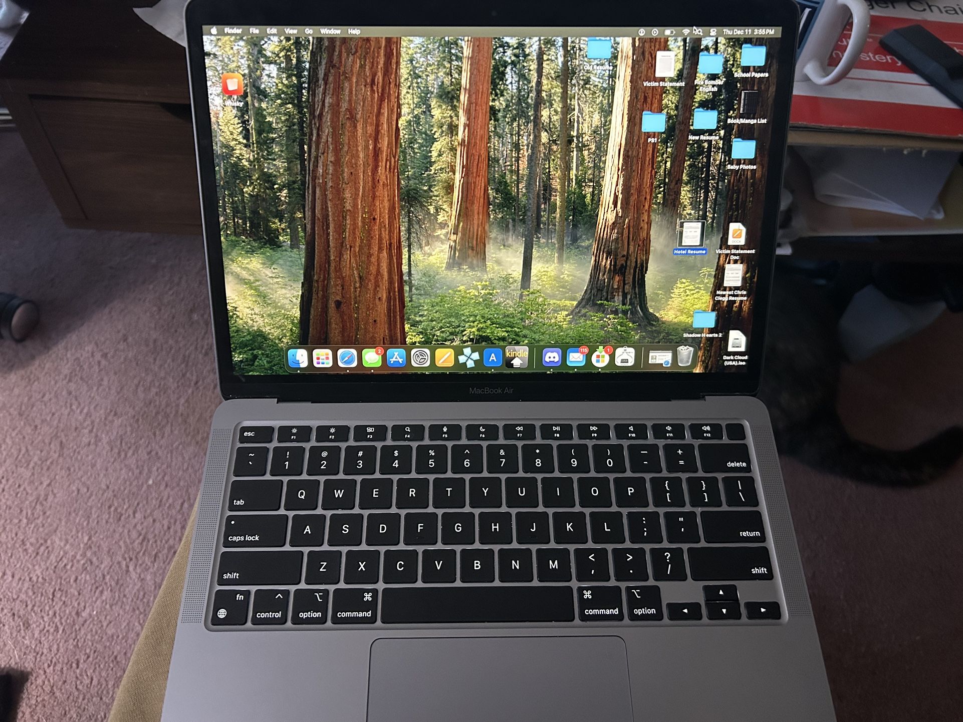 This is a 256 gb, 8 gig memory MacBook Air. I bought for when I was taking some online classes and since then it has been mostly collecting dust, so I am looking to sell it. It is pretty good condition, though I understand not many will care for the stickers. It’s at 95 for the charge cycle and the battery health is at 93% which I am told is also pretty good for a MacBook of this age.