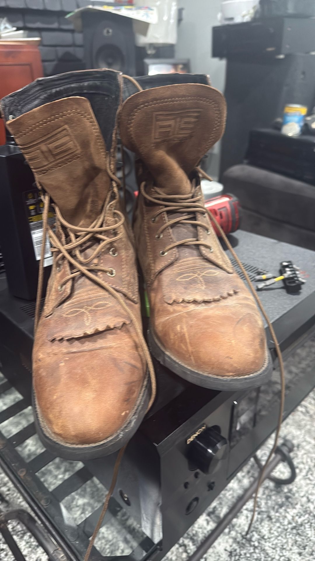 Very nice boots they’ve only been tried on a couple times never worn all they need is a good oil job some conditioner all that nice leather make me an offer for the worst I could say is no