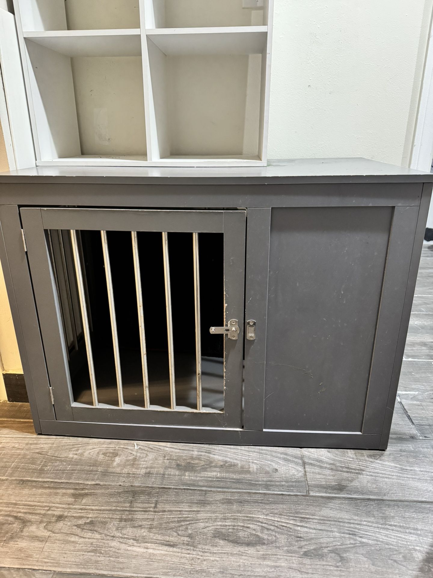 Selling medium dog crate Has some wear and tear but all the locks still work fine. It still looks really good in person. Dimensions are in pics 36.5 x 23 x 26 Mattress is included in the price