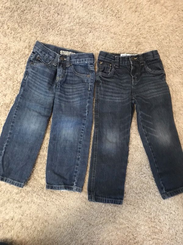 Straight legs boy jeans. Gymboree size 3t & Oshkosh 4t Both fit my son at the same time at 3 years old.