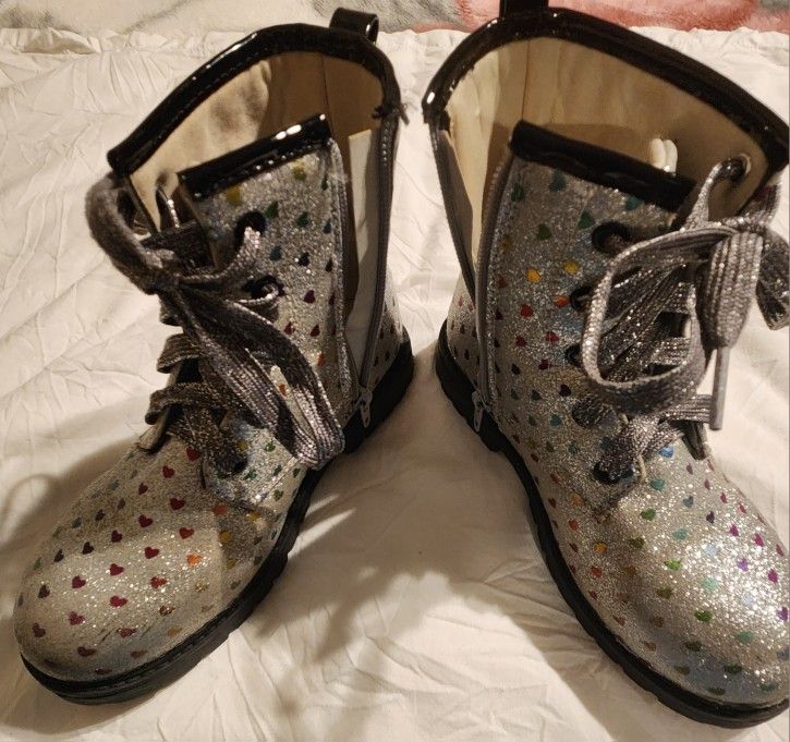 Olivia Miller Girl Boots, Children Size 3 Boots are hardly worn during school year as kiddo has a few pairs of shoes to cycle throughout the school year. Boots have been scrubbed clean, washed, and thuroughly dried. Side entry zippers work for entry and exit.