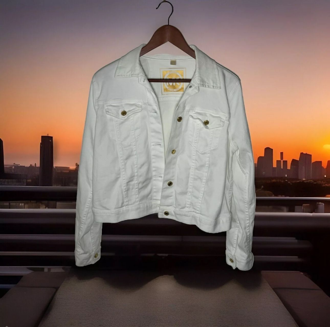Michael Kors Womens White Denim Cropped Jacket Size Large