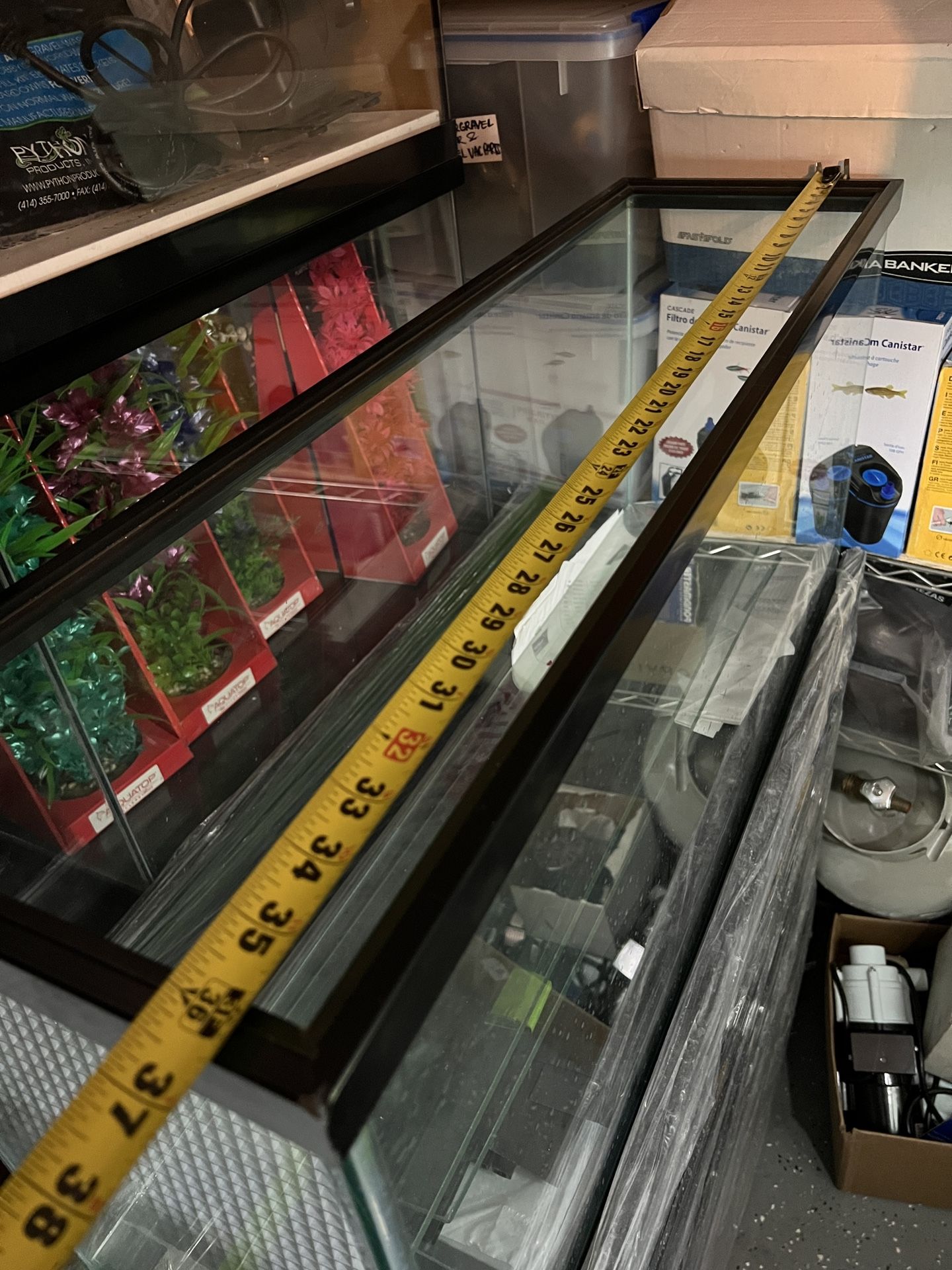 Perfect new condition California 20 gallon tank long custom created by elite aquariums (retail$170), dimensions are in the photos of listing paired with a new condition professionally hand crafted black open pine stand by elite aquatics from California(retail:$280), this stand is well crafted and far more stable than any stand from the big box stores, THIS IS made of real wood NOT MDF; great for either aquatic or reptile use. I am downsizing as i have too many tanks/stuff and possibly need to move. I also have a classic standard 20 long, with the same style stand on another listing. Tank is approx 30”x12.5”x12.5” I have practically everything you’d need, new or used, to start a tank-saltwater, planted, or freshwater; please dont hesitate to ask for additional supplies as i very well may have them-new and used-(at an additional cost for the additional items) live rock, dried rock, aquascaping rock, gravel, aquasoil, decorations, plants, filters, lights, background paper, food, chemicals, etc. 📍Twain and Hualapai, (West Las Vegas) Delivery is available with nonrefundable additional prepayment of epayment(venmo/cashapp/zelle/apple cash) of $20-$45 depending on distance from Twain and Hualapai
