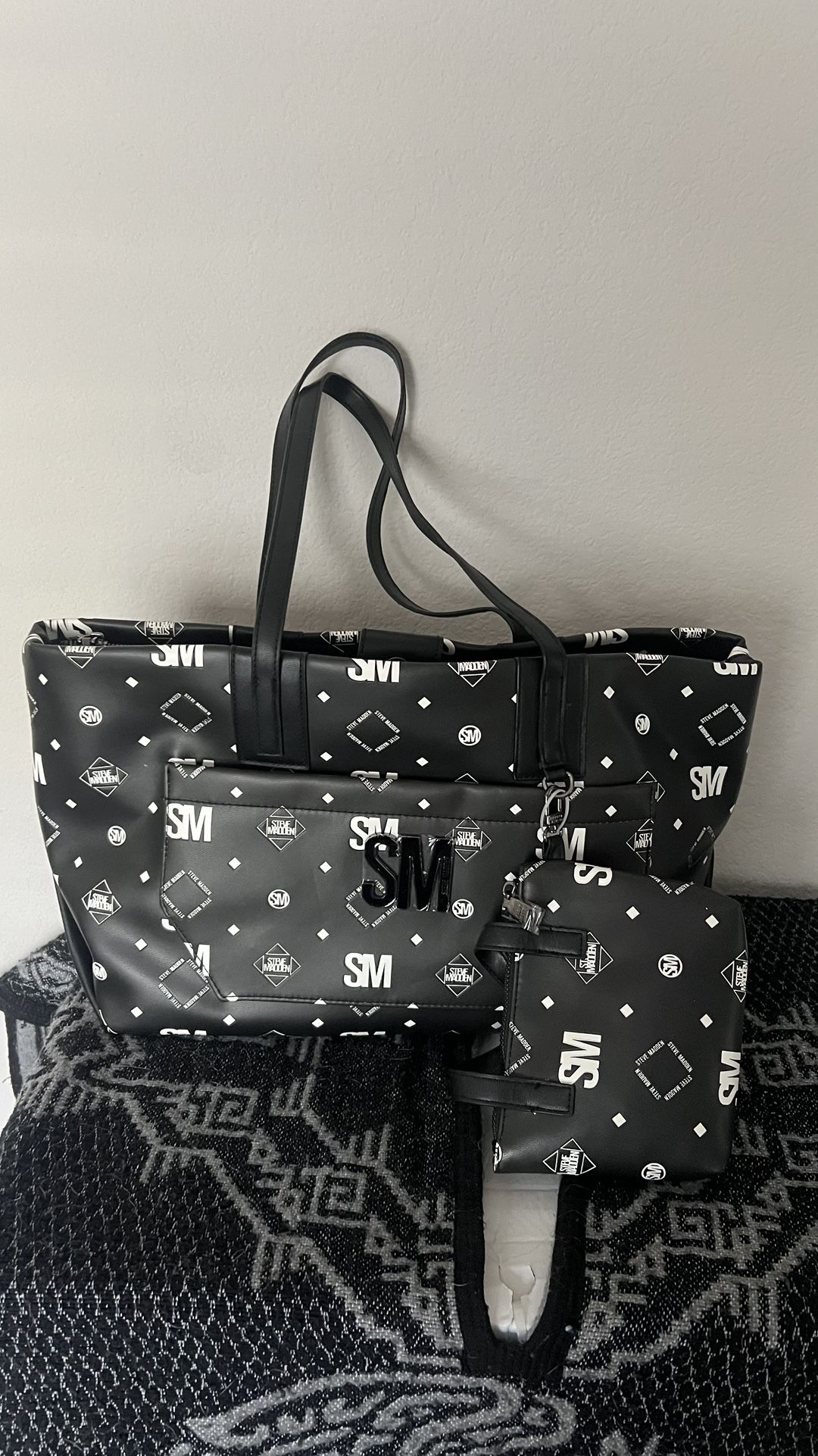 Black bag with very nice white lettering, brand new, never used. Bolsa para dama color negro con las letras blancas Nuevo nunca usada
