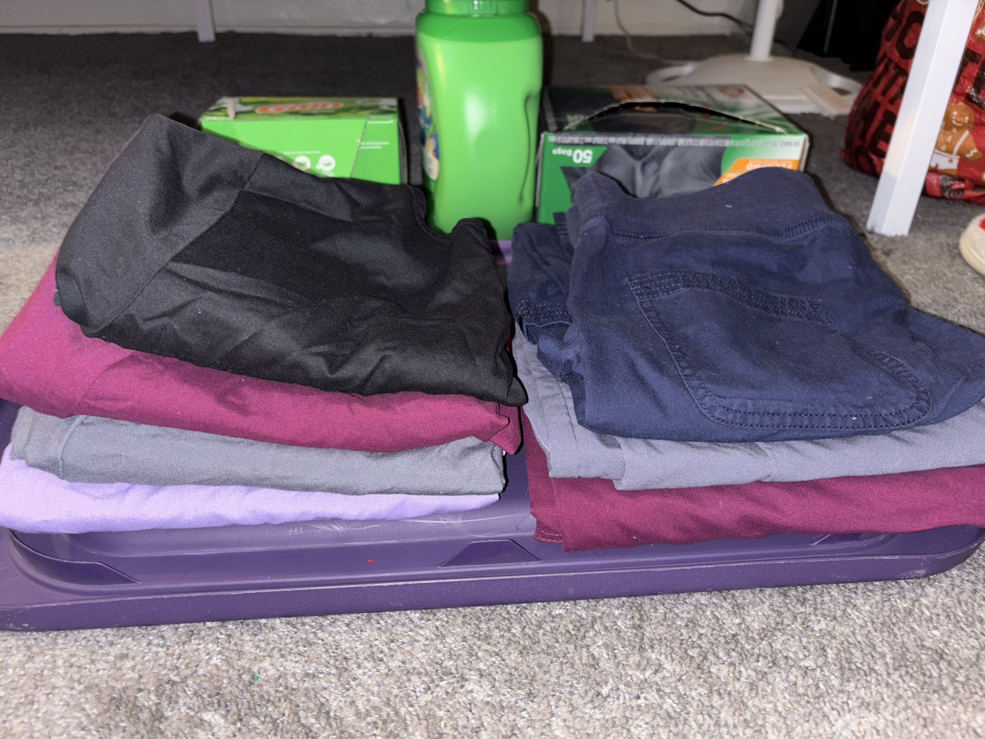 light purple cherokee top S $10 grey denice top S $10 burgundy scrub star top S $10 black dickies top S $10 navy koi pants M $10 grey dickies pants S $10 navy just love set $10 navy dickies set $20 burgundy dickies set $20 blue dickies set $20 $75 IF YOU TAKE EVERYTHING