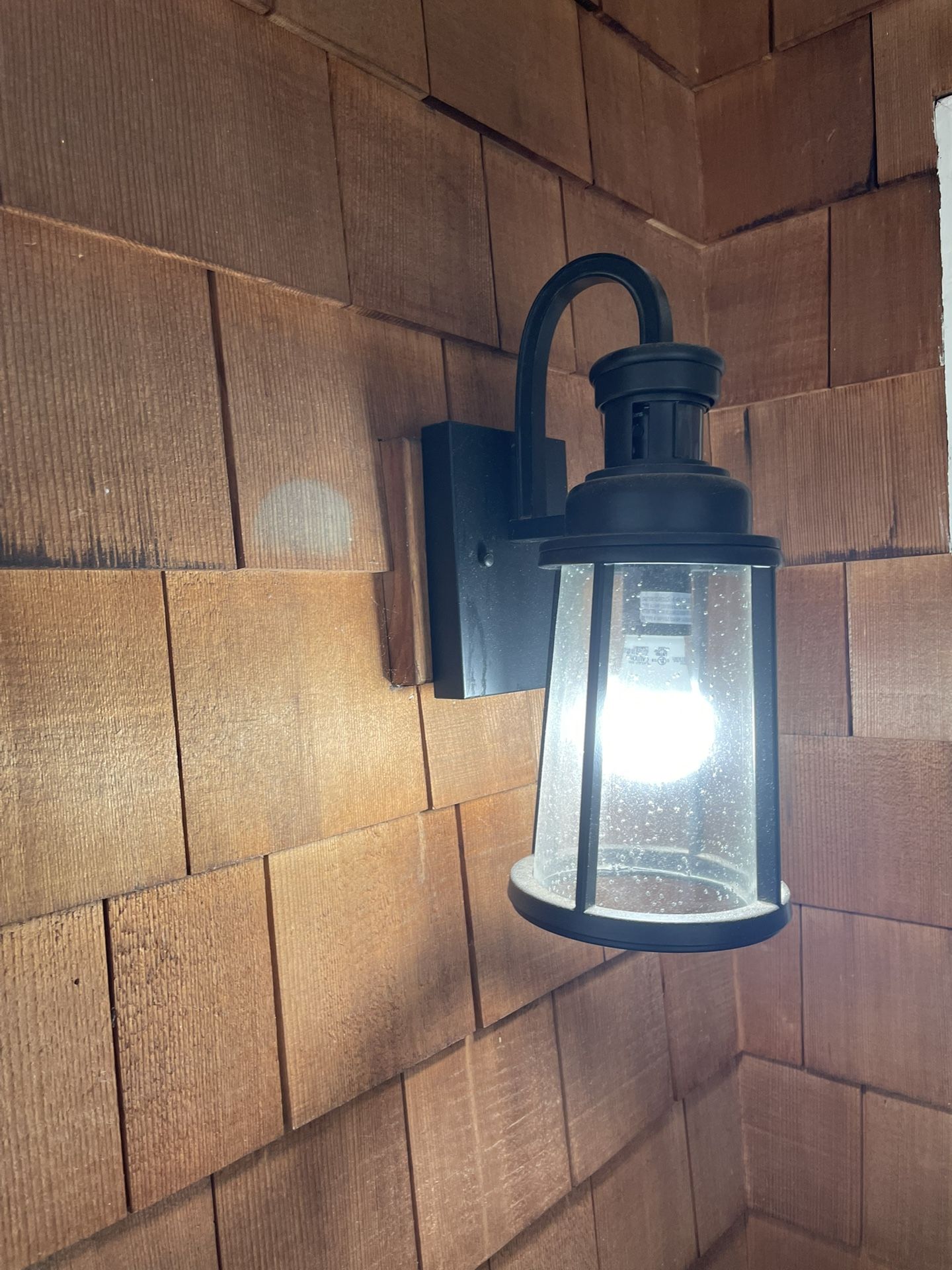 Oil rubbed bronze wall sconce with glass in great condition. Motion sensor with varying brightness and timing settings. 5 available and willing to negotiate if you will take more than 1.