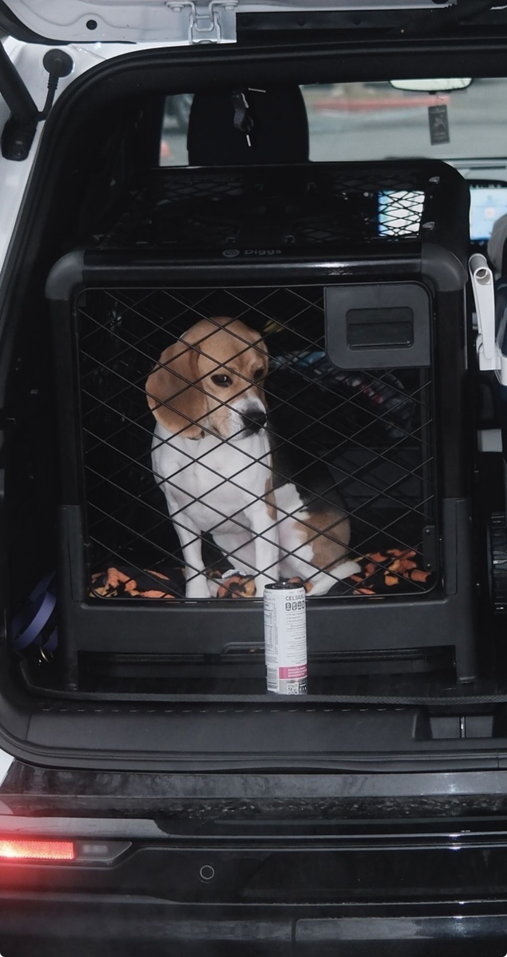 Size: Medium (34.6"L X 22.9"W X 23.8"H) Color: Charcoal Used and still in good condition. This crate has been great for traveling with our beagle, she only needs and uses half of crate. I will be sizing down to a ‘small’ size. Crate, divider & bottom tray included. Located in South Bay Area. Thanks for looking!