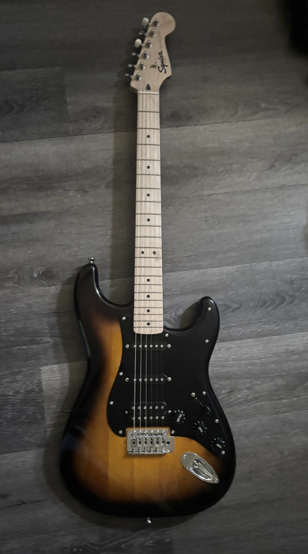 Guitar - Squier 037 3151 526 sonic strat laurel fingerboard AMP - 1X8 25W mustang LT25 25W GTR C I’m not firm on price, i’m open to discuss it.
