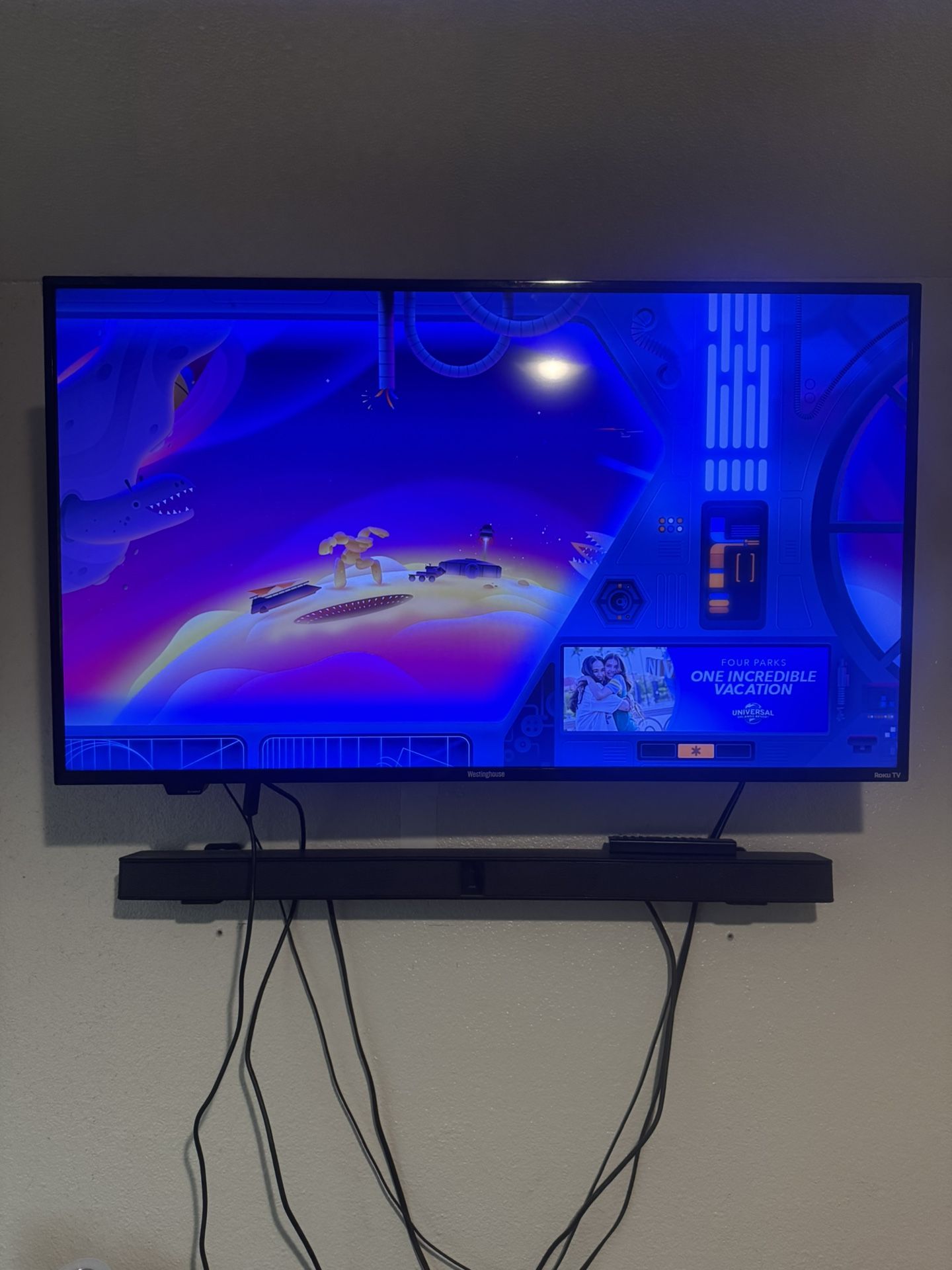 Or Best Offer. Pick up only please. 43” Roku 4K TV. Works very well, we are moving to a different state and don’t need it anymore. Comes with Sony soundbar (see picture, comes with the small wall mounts for that too). Also comes with TV wall mount (see picture). Wall mount allows you to pull the TV out from the wall, move it left and right, and angle it up and down. Both the TV and the soundbar come with original remotes.