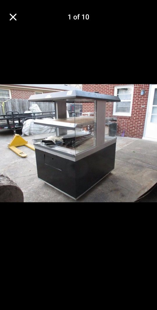 Self-Serve from 2 Sides Remote Hot Display Separate controls for upper and lower heat Radiant upper heat Tempered curved glass and side panels for maximum product visibility Easy access for under glass cleaning Dual bumpers to prevent scratching and denting Incandescent lights Cover panel hides controls Cooled landing shelf on both sides for customer handling HI-3 w/ IP-3 Base Dimensions: 58.5"H x 45"W x 42"D Weight: 690 lbs. ELECTRICAL: 120/208/250V, 1 Phase, 5.4KW/ 4.5KW, 30AMP, 60Hz * *EXTENSION PLUG REQUIRED, PLEASE SEE PICS APPROXIMATE DIMENSIONS: 61"H x 50½"W x 38"D (OVERALL)WITH STAND 12"H x 41"W x 30"D (EACH SHELF) *** DISCLOSURES: LIGHT BULBS MAY/MAY NOT NEED TO BE REPLACED. REPLACEMENT BULBS NOT SUPPLIED. ACRYLIC BUMPER HAS MINOR CRACKS. ONE OF SIDE BLACK BUMPER IS MISSING, CONTROL BOX KEY IS EXCLUDED. THIS UNIT WAS IN OPERATION WHEN REMOVED FROM A CLOSING BUSINESS. THE PHYSICAL CONDITION, AND ALL PARTS/ACCESSORIES INCLUDED WITH THIS ITEM, IS AS REPRESENTED IN THESE PHOTOS. SELLING AS SHOWN.