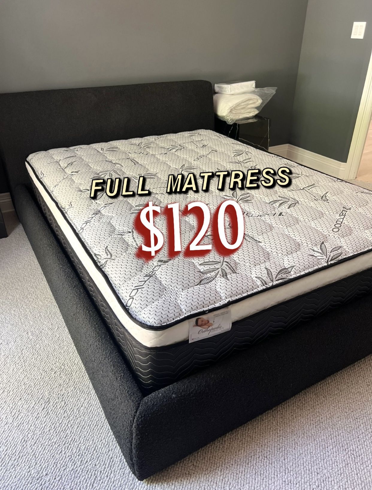 $140 QUEEN MATTRESS $200 with BOX SPRING $120 FULL MATTRESS $180 with BOX SPRING TWIN $100 $150 WITH BOX SPRING $20 - $30 DELIVERY FEE ‼️ DEPENDS ON THE AREA !!