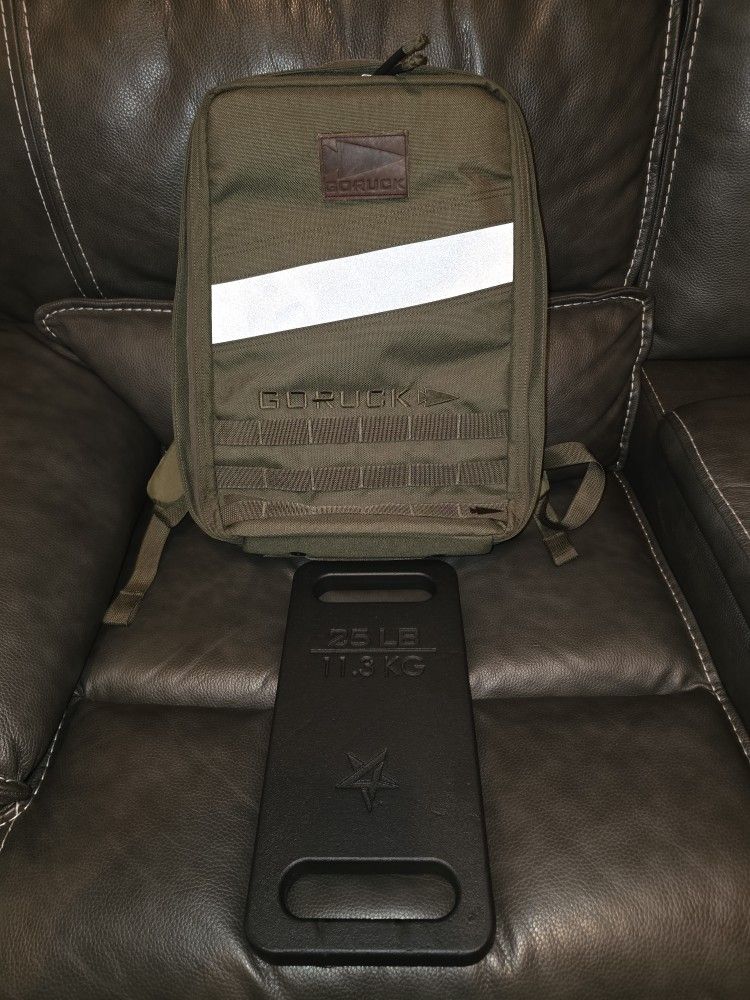 In excellent condition. Comes with a 25lb Yes4All ruck plate. Also comes with a leather Goruck patch and a Goruck leather American flag patch. I will also throw in a 45lb ruck plate for an extra $30 if interested.