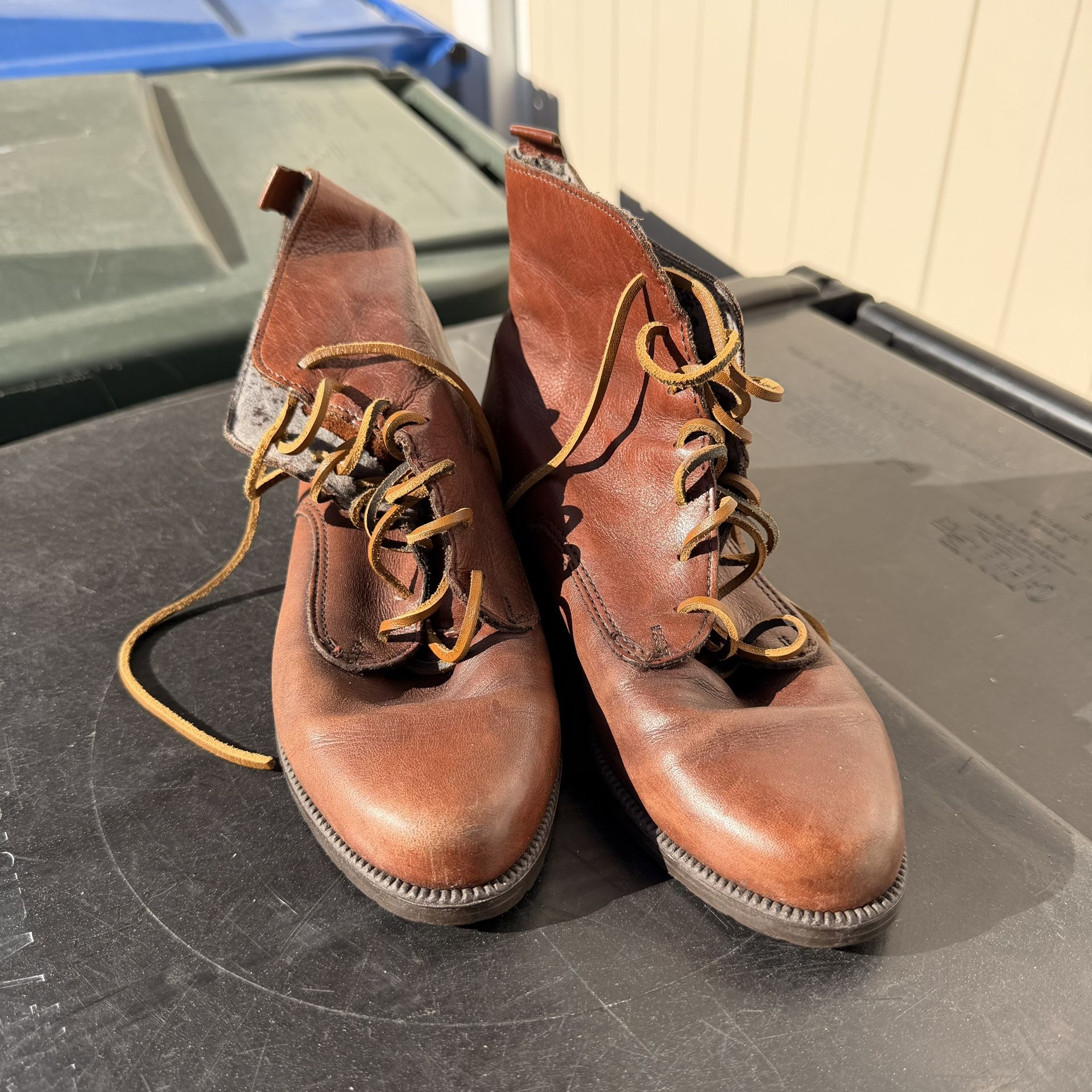 Vintage White Mountain brown leather boots with yellow lace. Size 8