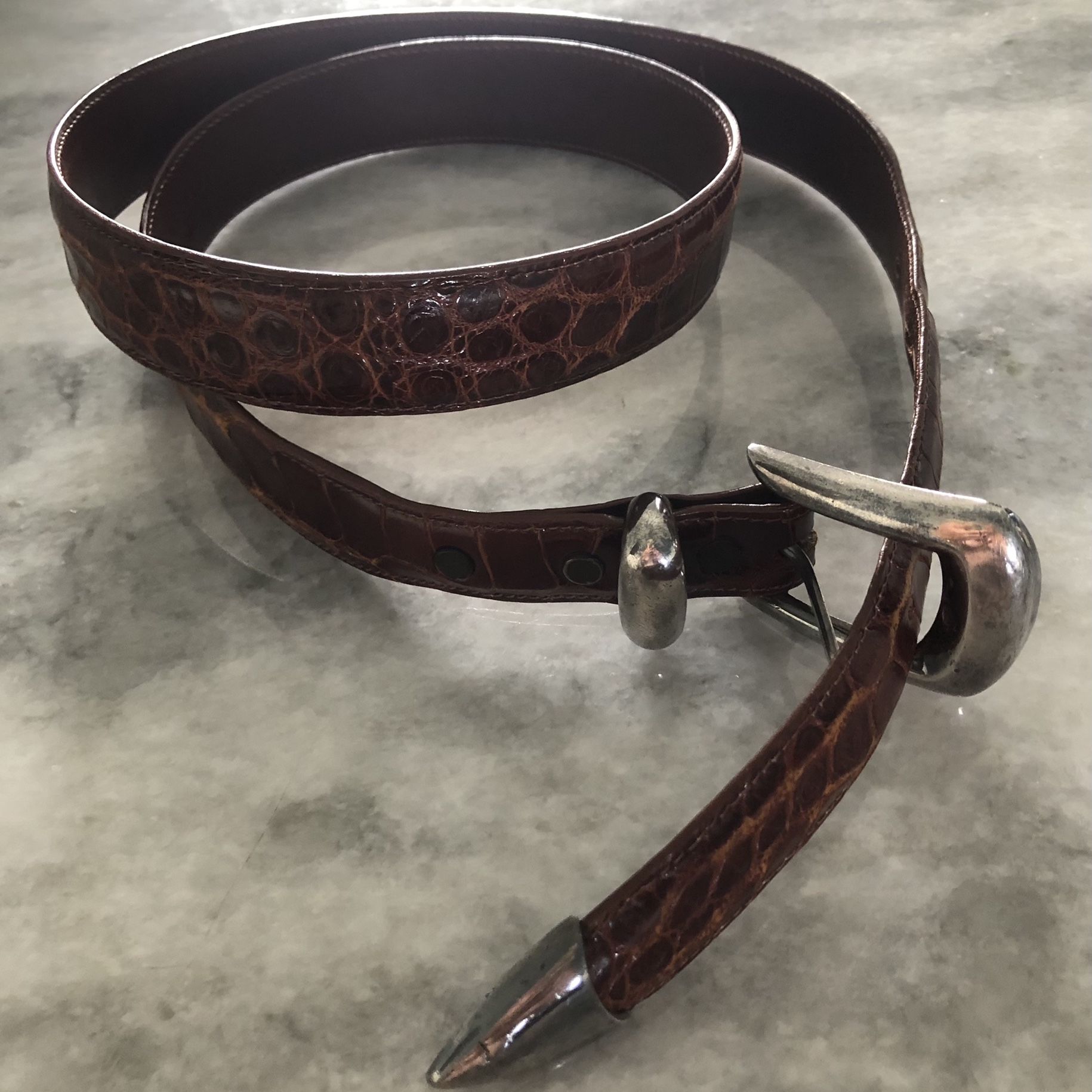 Crocodile & Sterling Buckle Signed Vtg Belt Size 40
