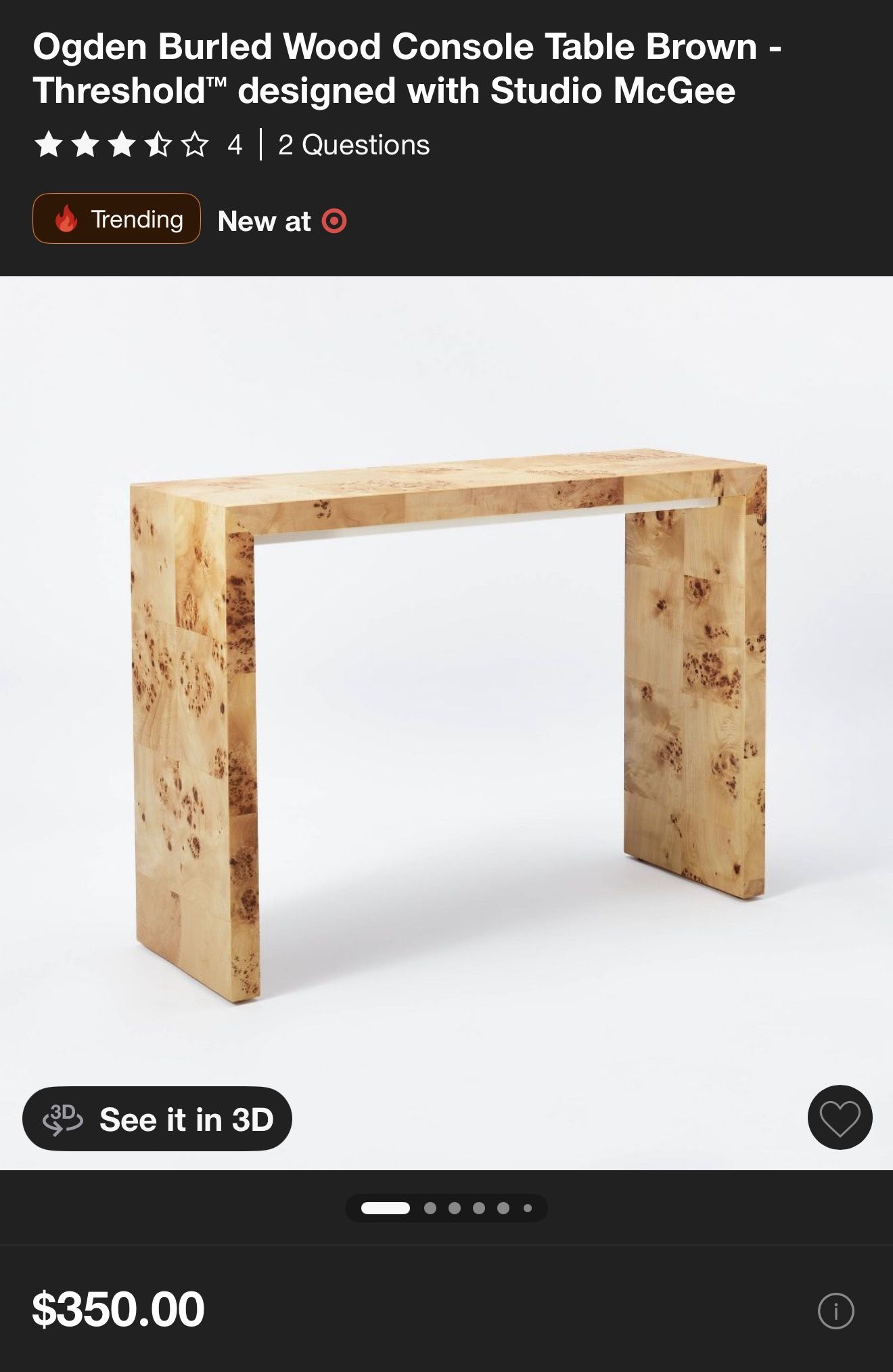 In good conditions has a minor blemish on one corner see photo 4. Studio McGee by Threshold Burled wood console 30x42x14