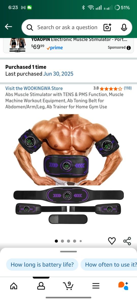 Abs Muscle Stimulator with TENS & PMS Function, Muscle Machine Workout Equipment, Ab Toning Belt for Abdomen/Arm/Leg, Ab Trainer for Home Gym Use