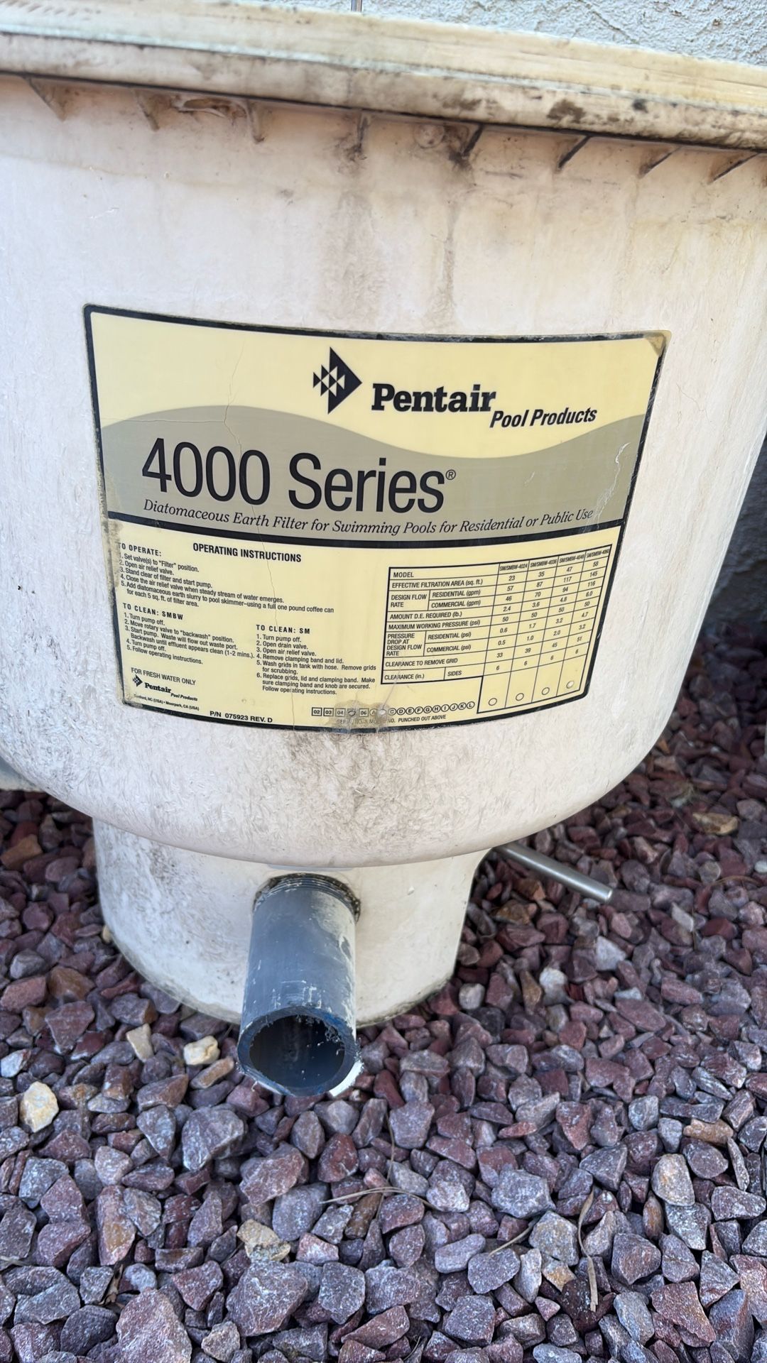 Pentair 4000 60sq ft. Bottom has a slight crack. Filters and rubber seal are about a year old and in good condition.