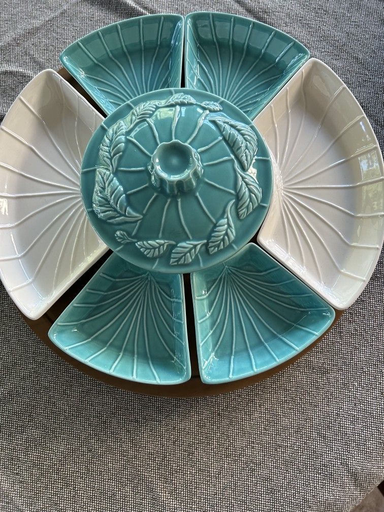 Lazy Susan. Maurice of California USA.67 In excellent condition. 15 1/2" diameter. Green and white. Ceramic.