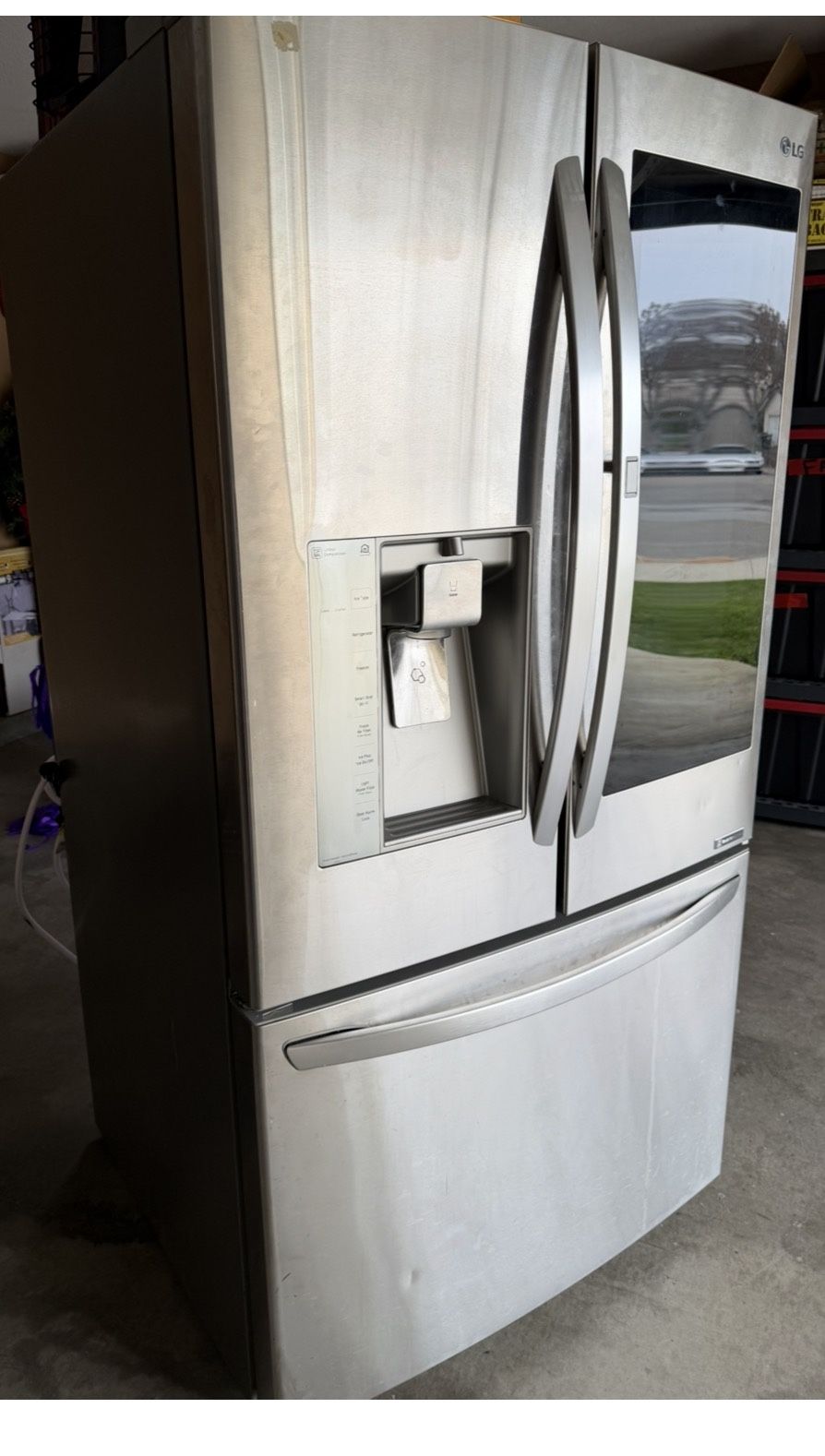 Beautiful stainless steel fridge. All the shelves are in good condition. Stainless is in good condition. Ice and water dispenser. Very clean. No smells. Great looking fridge. 36x70x36 We moved to this house and it had a fridge so we’ve had this one in the garage. Tried to use it the other day and didn’t cool fast enough. Might need some work after sitting for so long. No low ballers please. This is a $3,000 fridge. I’m just trying to clean up my garage. I’m in Tracy. Pick up only my