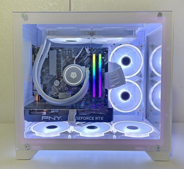 Super nice all white Gaming PC that can run anything you throw at it at 1440p and 4K!!! It'll run any recent game at max graphics and high fps. NO TRADES!! Specs: ✅️ Ryzen 5 5600X ✅️ Asus Prime B450M-A II ✅️ PNY Nvidia RTX 4070 12GB ✅️ 32GB 3600mhz C18 Corsair Vengeance RGB Pro RAM ✅️ 1TB TeamGroup Nvme ✅️ 240mm ID Cooling AIO ✅️ Gigabyte 80+ Gold 750W Asking $1,400 FIRM