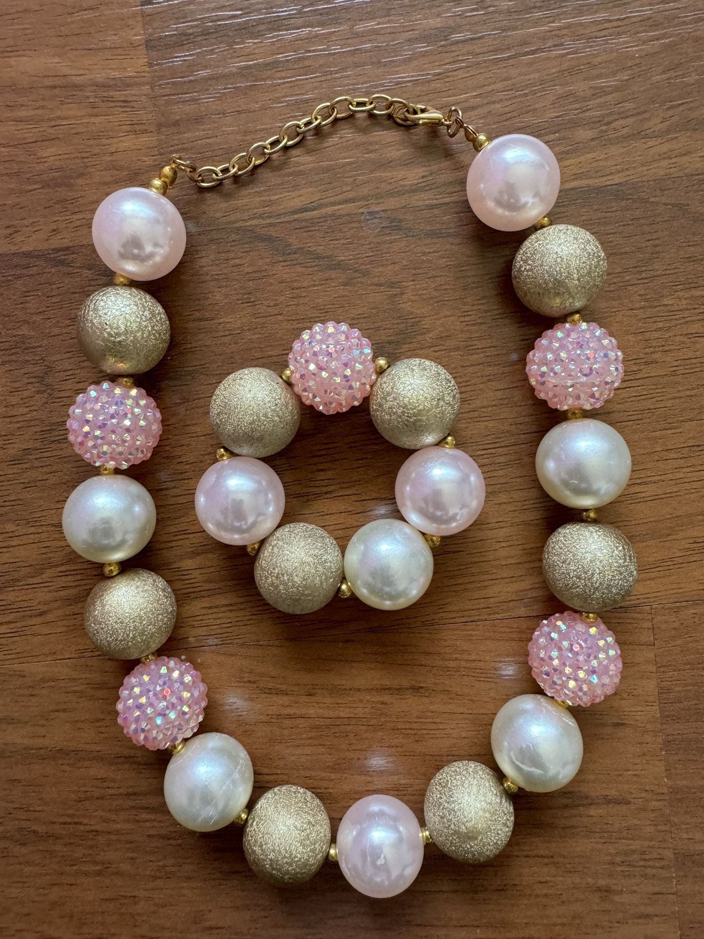 Pink And Gold Baby/toddler Necklace And Bracelet