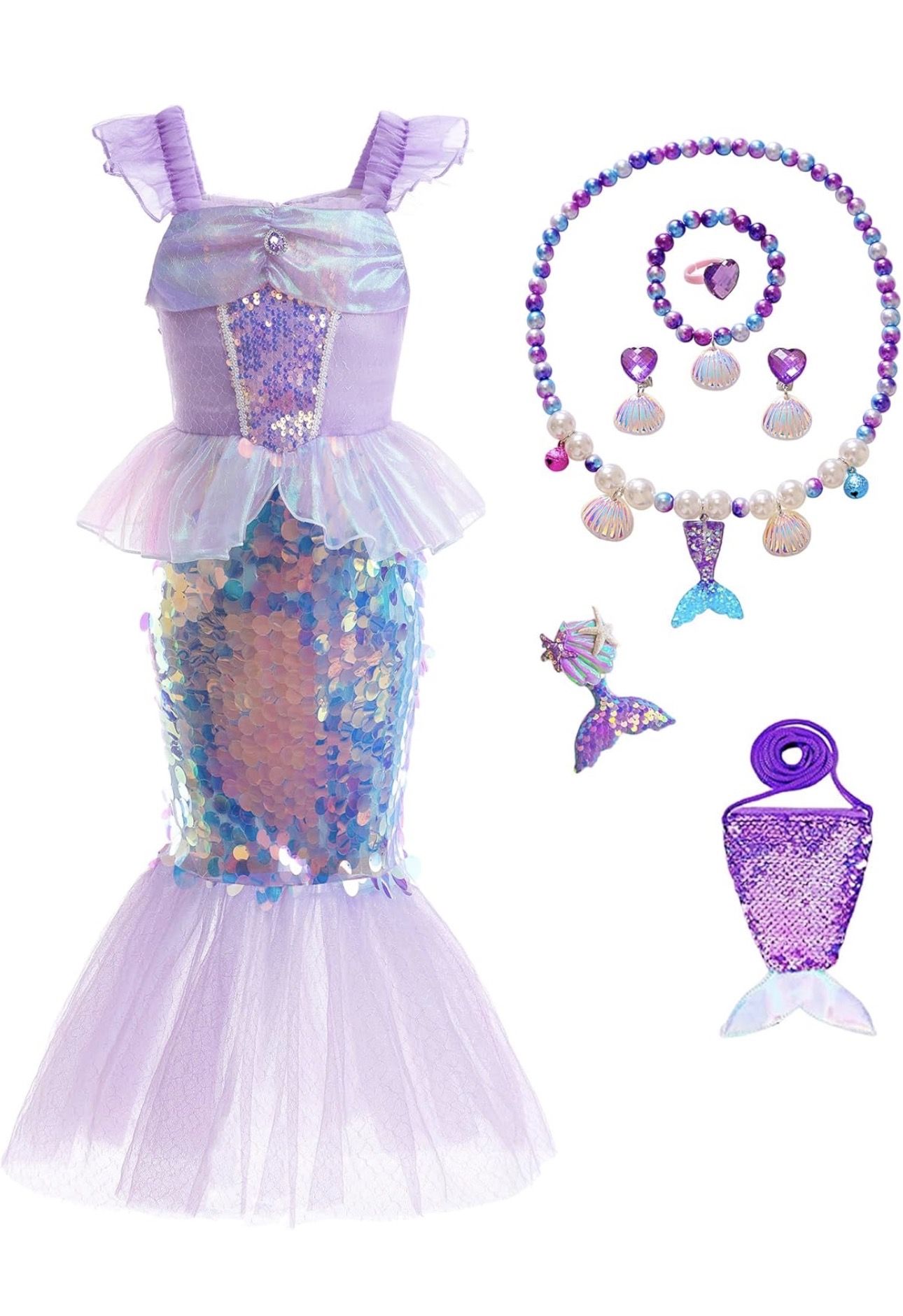 🔥Brand new🔥 Little Girls Princess Mermaid Costume for Girls Dress Up with Accessory for Christmas Birthday Party Supplies for5-6 years old