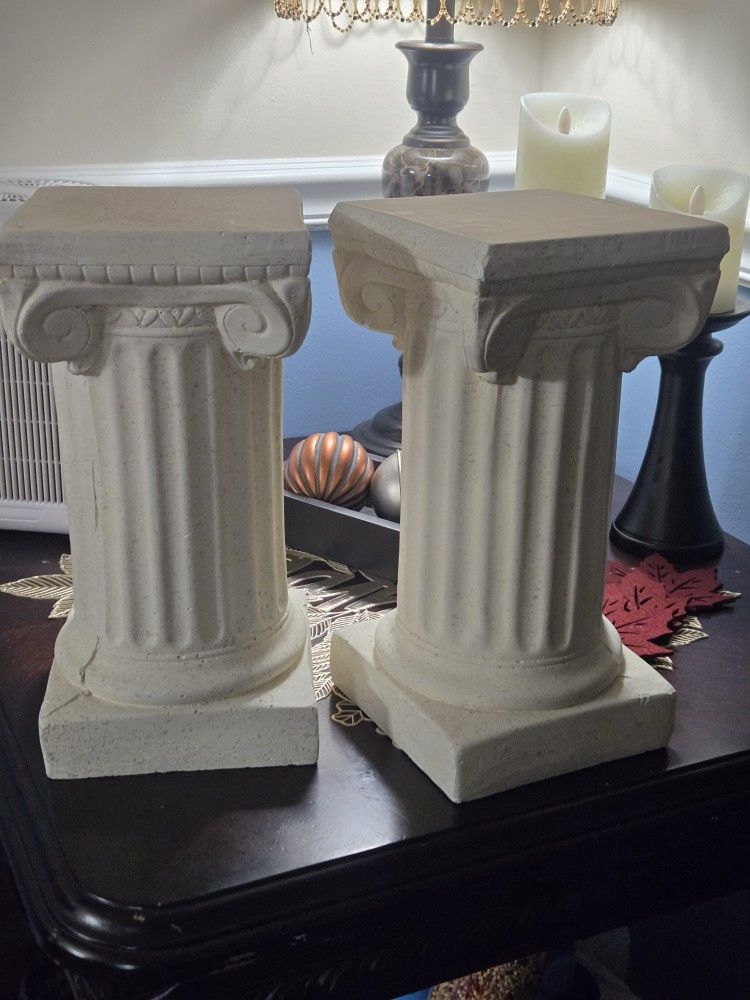 Small cream colored pillars, great accent to any room. Able to put plants,photos, or various items on. No reasonable offer refused, priced to sell. (ea)