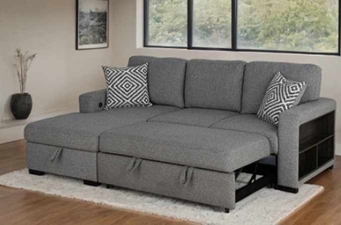βπ« We do not have a showroom. We deliver directly from the manufacturer to your home π . π Delivery is only $40 π οΈ Assembly is an extra charge. Price on assembly depends on which item you order! π΅ We accept cash on delivery Mattresses are sold separately π₯We are voted #1 on offer up, please also view other options on our page!!! Beds, bedroom sets, sectional, sofas, daybed, futon, vanity, dining set, chairs, recliner, Loveseat, dresser, queen bed, king bed, desk, kitchen cabinets, shaker cabinet, Grey Sectional, Grey sofa FM64005GY-SECT-L Contemporary Gray Fabric, Foam, Engineered Wood Track Arms w/ Bookcase Dropdown Table w/ USB-A & USB-C Charging Ports Chaise w/ Storage Pull-Out Sleeper Pocket Coil w/ Foam 100% Polyester Fabric Pillows Included Sectional. 93"W X 61"D X 38"H(SEAT HT: 18", SEAT DP: 22")