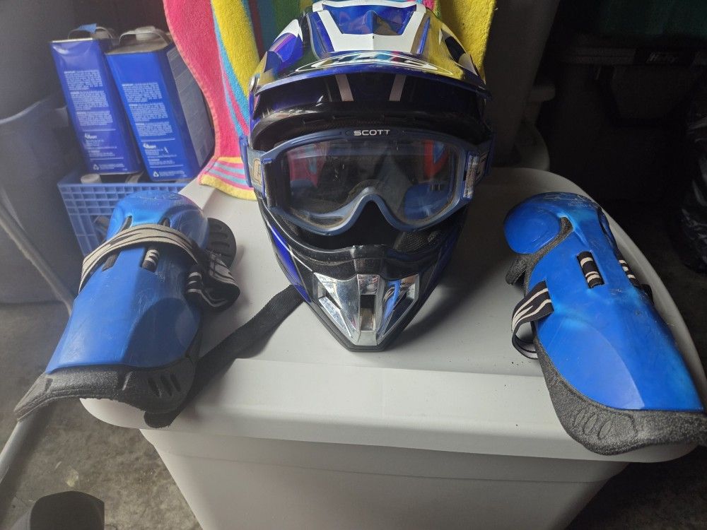 HJC Dirt Bike Helmet With Goggles & Shin Guards
