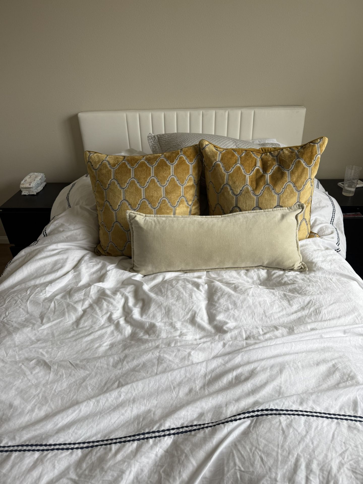Great condition! Was used as guest bed, mattress enclosed. Can sleep two people.