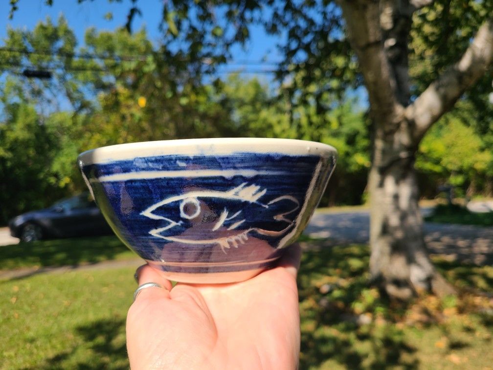 JWC Fish Pottery Bowl Blue and White. No chips or cracks. Perfect catch for a fish lover!