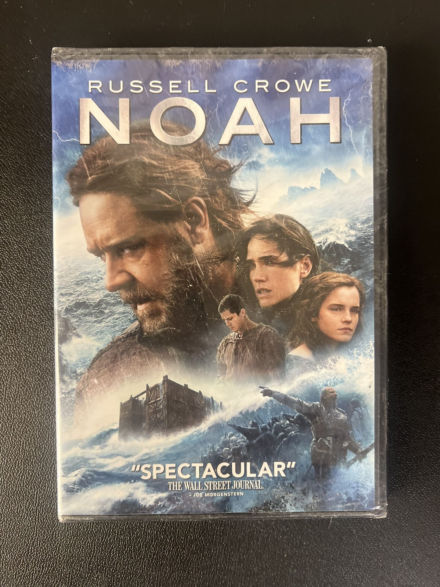 The product is a new, sealed DVD of the 2014 film "Noah" starring Russell Crowe, Emma Watson, and directed by Darren Aronofsky. This faith-based drama has a PG-13 rating and offers a widescreen aspect ratio in English language. The DVD is formatted in NTSC video format with a region code of 1, featuring Dolby Digital 5.1 sound quality and a run time of 137 minutes. Produced by Paramount, this Standard Edition DVD comes in a standard DVD case and includes actors such as Jennifer Connelly and Anthony Hopkins.