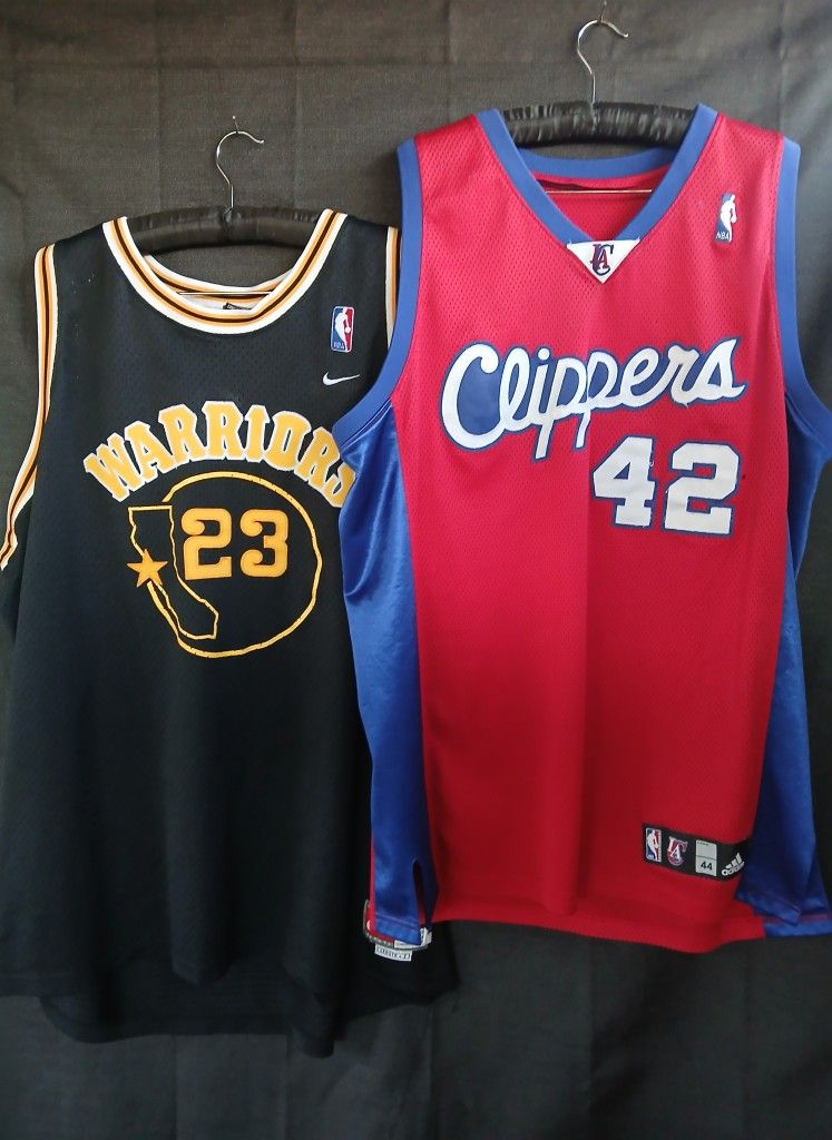 2 Vintage Throwback NBA Jerseys - Clippers #42 - Warriors #23 - Great Condition!