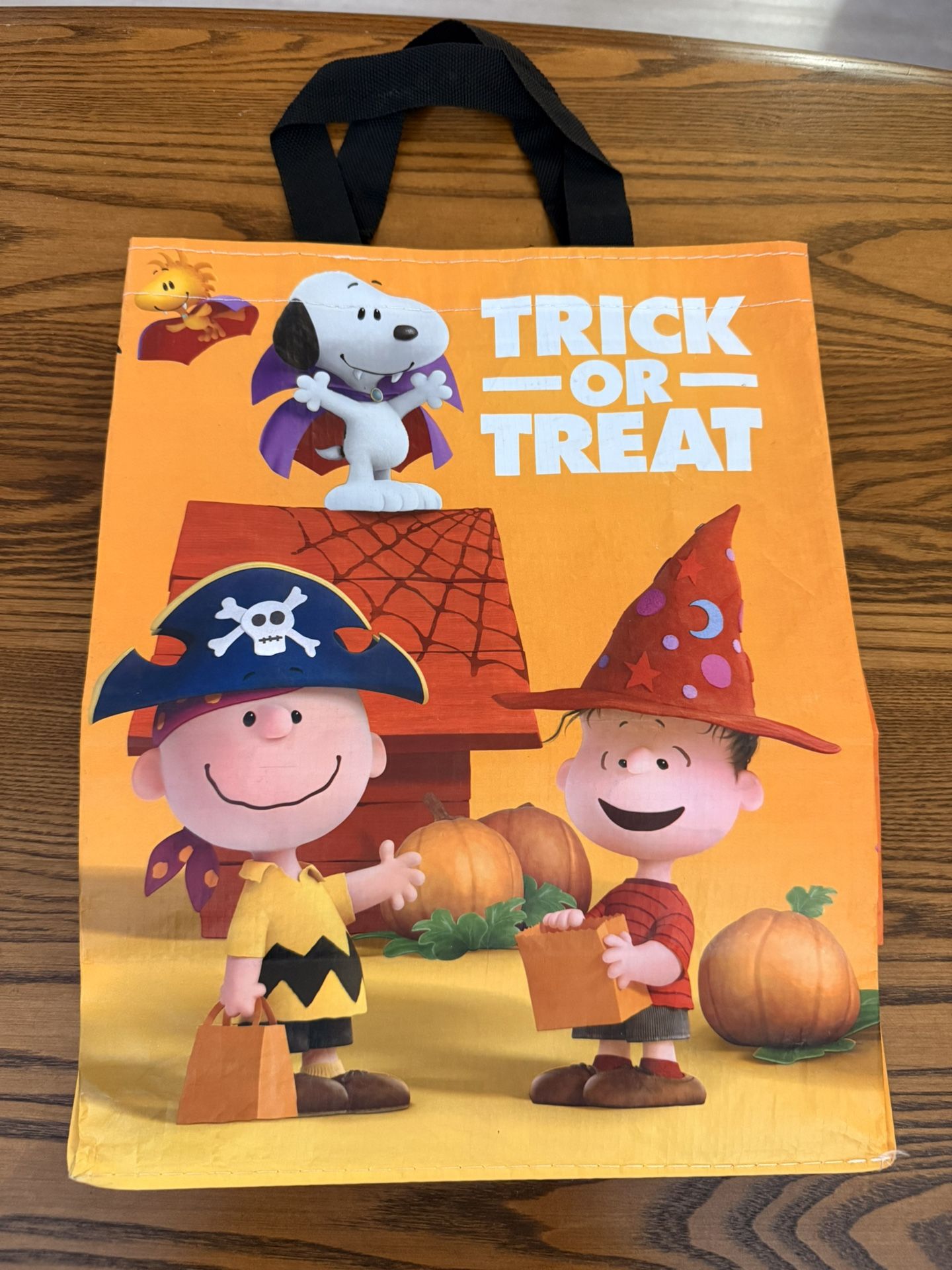 2015 multi branded promo bag snoopy movie. Reusable trick or treat or just grocery. Durable bag!