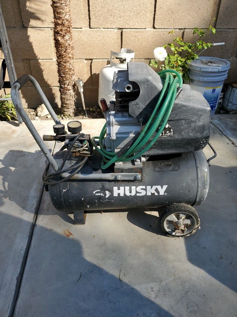 Husky 8G 150 PSI Hotdog Air Compressor with hose.