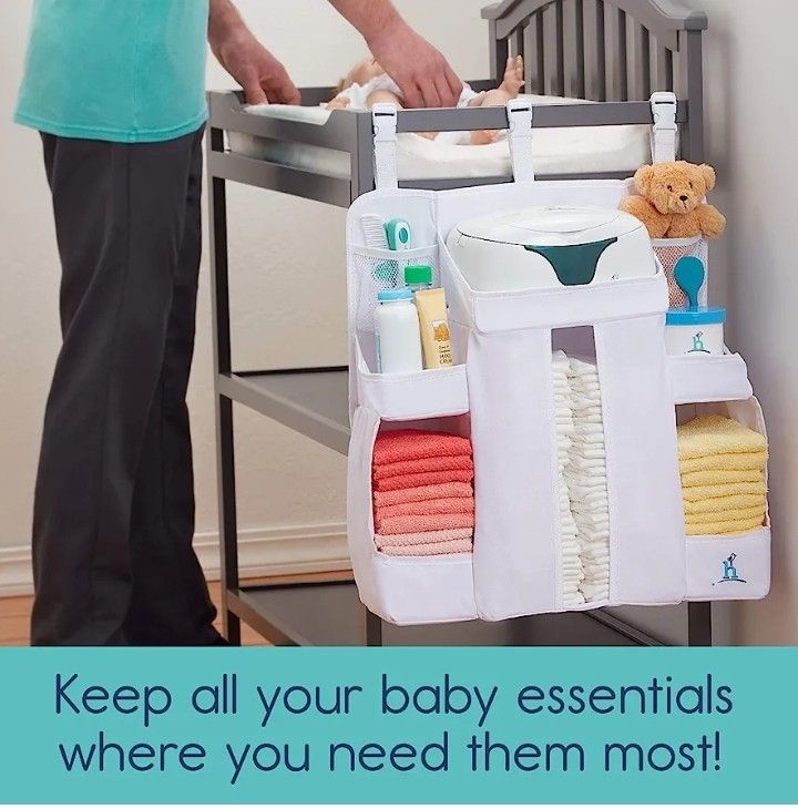 hiccapop Hanging Diaper Organizer for Changing Table and Crib, Diaper Stacker and Crib Organizer | Hanging Diaper Caddy Organizer for Baby Essentials