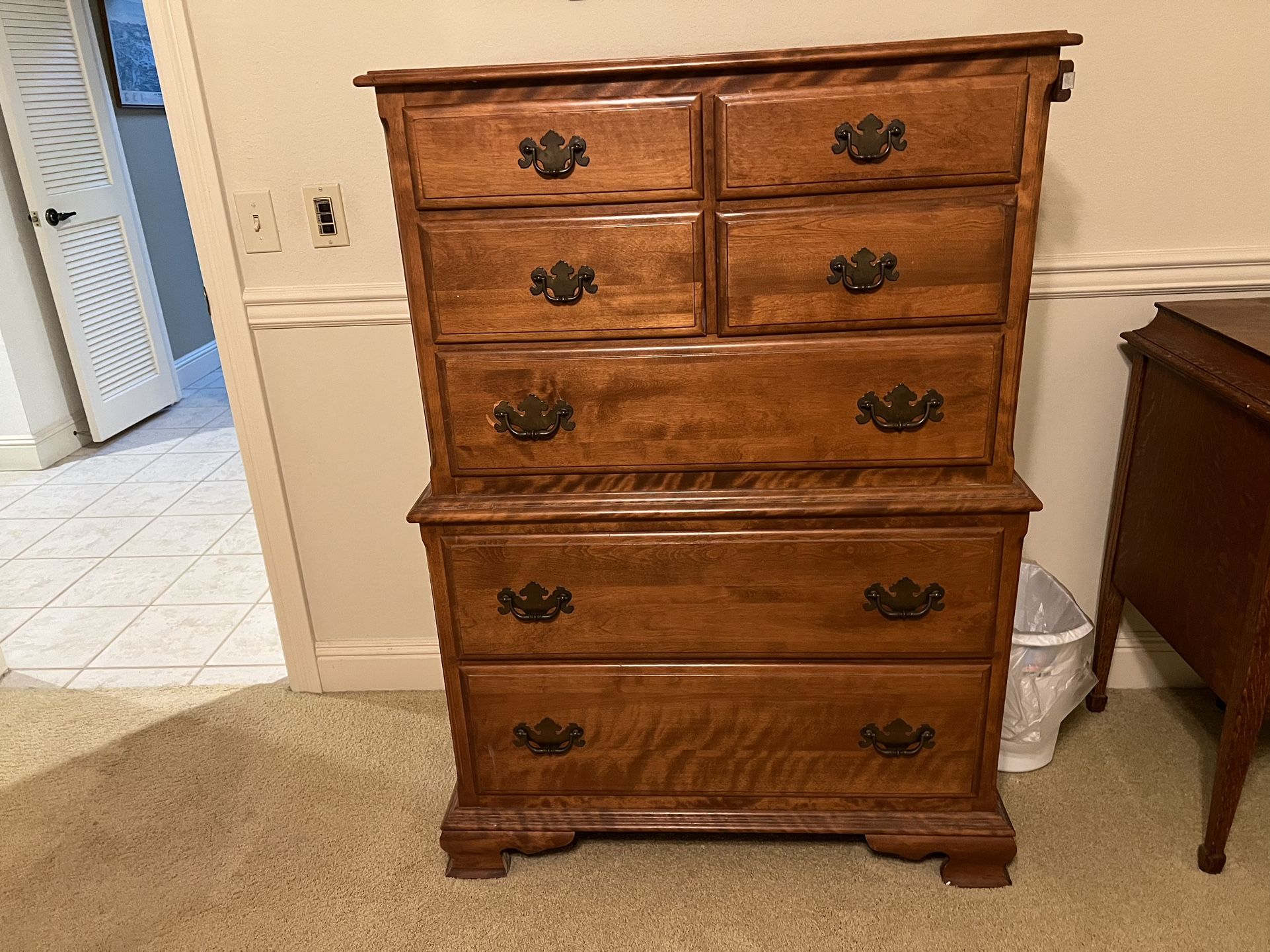 Selling this all wood Ethan Allen dresser with dove tail drawers. The dresser is in very good condition but does have one chip as pictured.