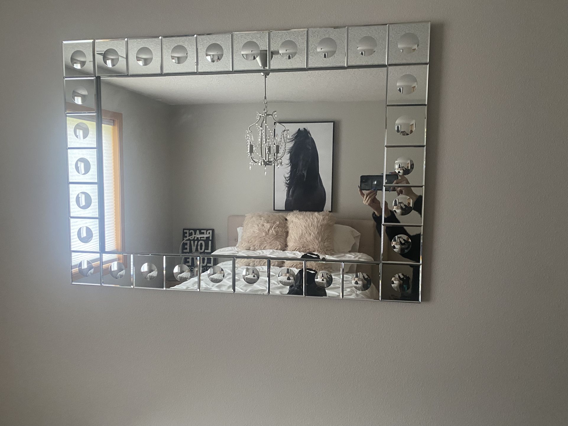 Very heavy mirror There is a small blemish on the bottom in the middle Paid $250 on Wayfair