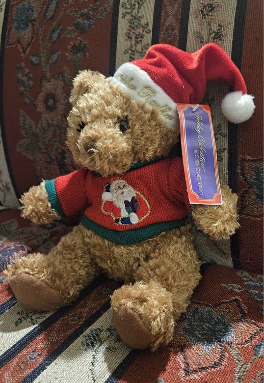 CHRISTMAS " CHRISTOPHER RADKO" BROWN TEDDY BEAR SOFT PLUSH ANIMAL TOY APROX 10"INCHES NEW WTH TAGS