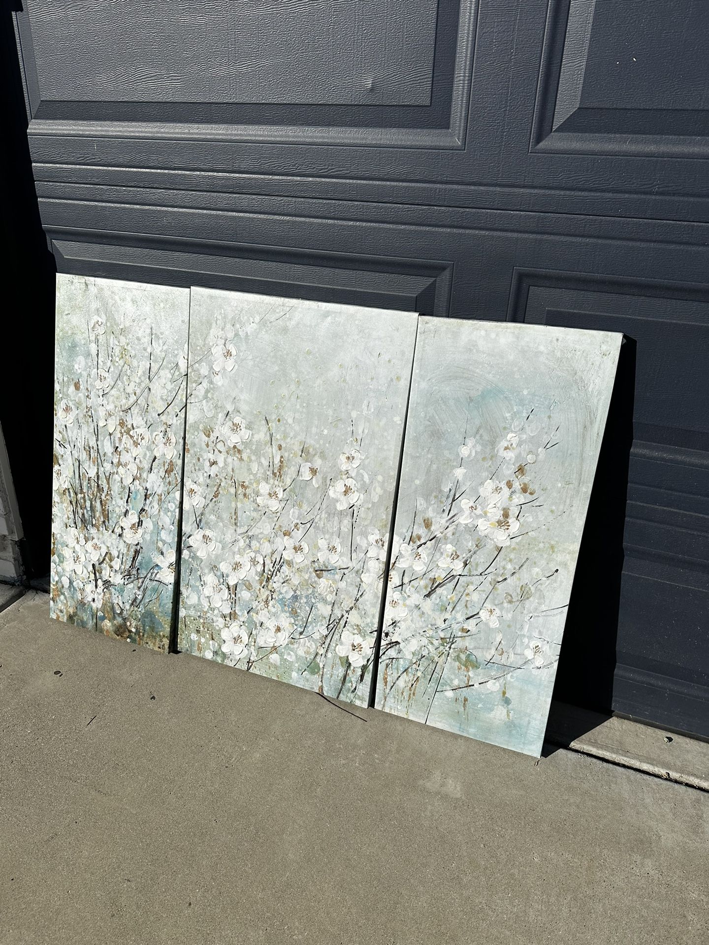 Blue Beige White Floral Flower Painting Canvas Decor Home Wall